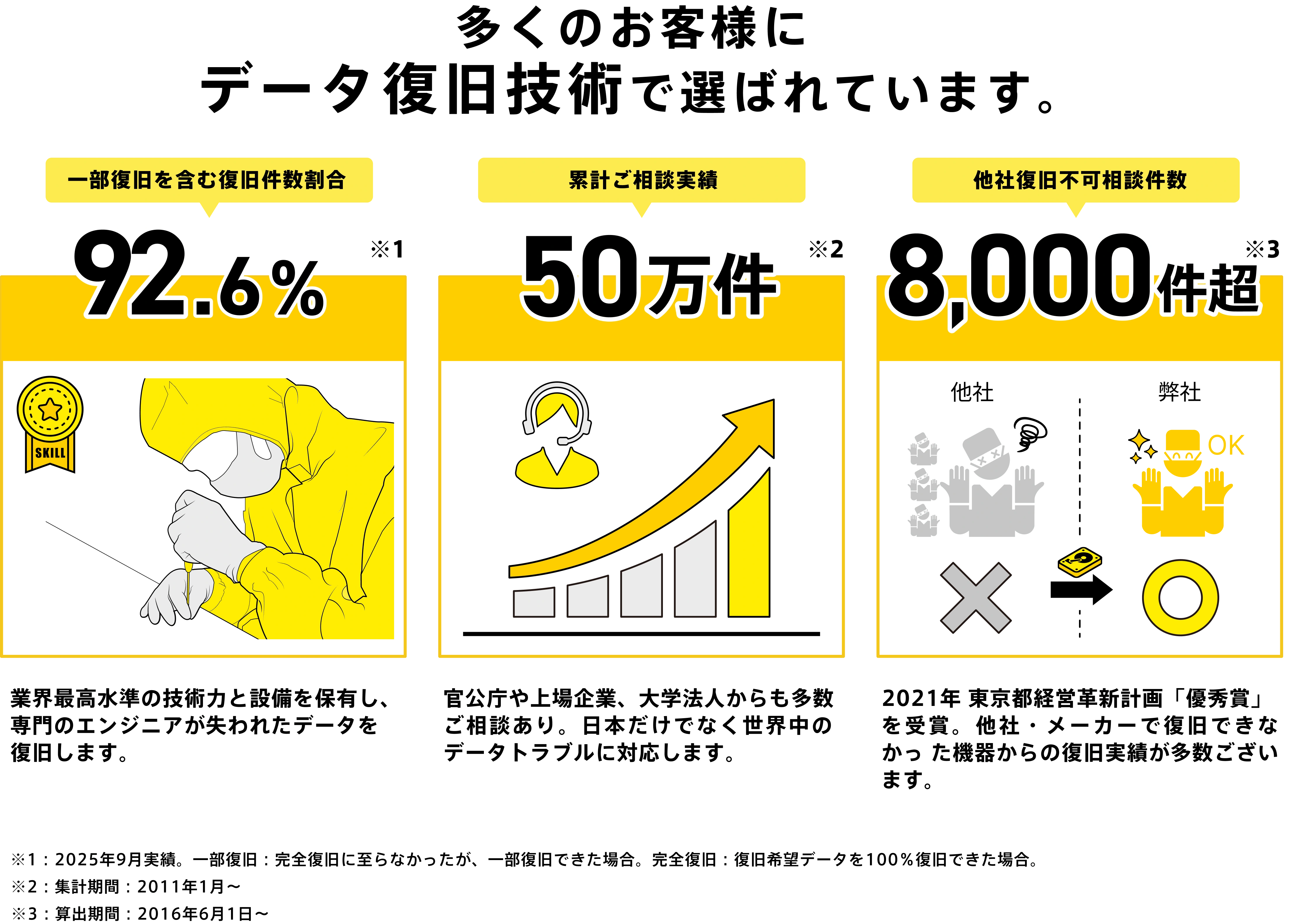 ※1:2025年9月実績。一部復旧:完全復旧に至らなかったが、一部復旧できた場合。完全復旧:復旧希望データを100%復旧できた場合。詳しくはこちら