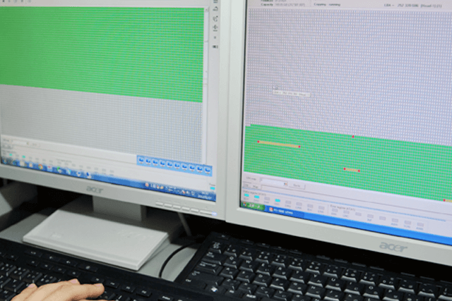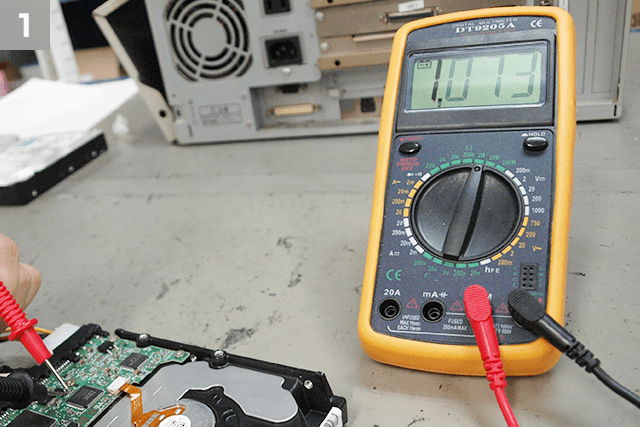復旧作業としては、専用機器にてハードディスク内の磁気情報を読み出します。 読み出したセクタ情報から、数字の羅列を職人が目視で確認しながら独自の計算式を使用してファイルシステムの構成とファイルの復元を行います。1セクタあたり1024文字。1GBだと200万セクタ 約20億文字になります。その中から、壊れている箇所を割り出して修復する為には、細かい手作業が必要になります。